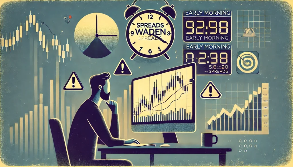 特に日本時間の早朝は、欧米市場が閉まっており、アジア市場も活発でないため、スプレッドが大きく広がりやすい時間帯と言えるでしょう。