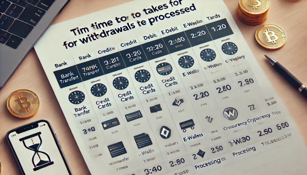 出金にかかる時間は、方法によって異なり、銀行振込は2~7営業日、クレジットカードは1~2ヶ月、電子決済サービスは1~3営業日が目安です。