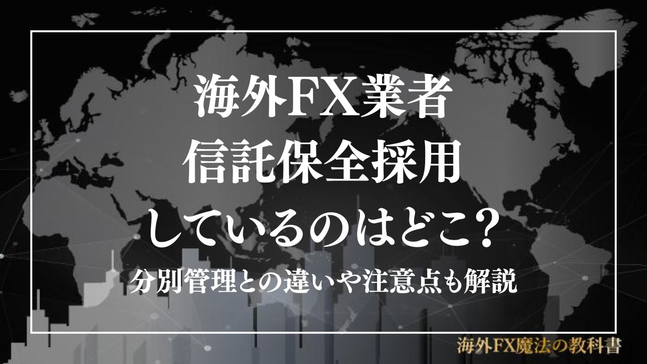 本記事では、信託保全を採用している代表的な海外FX業者を紹介し、信託保全と分別管理の違いや、それぞれの注意点について詳しく解説します。